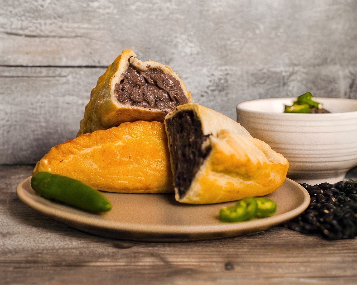 Grata combinación de frijoles bayos con chorizo, envuelta en la masa clásica de hojaldre.