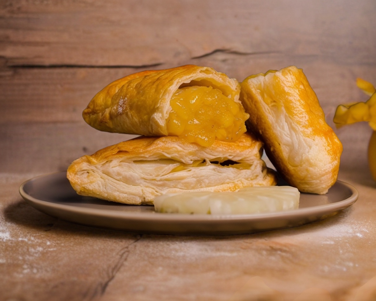 Dulce empanada de mermelada de piña con nuestra clásica masa hojaldrada.