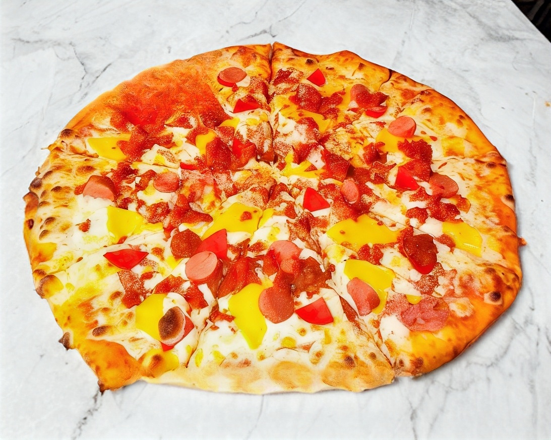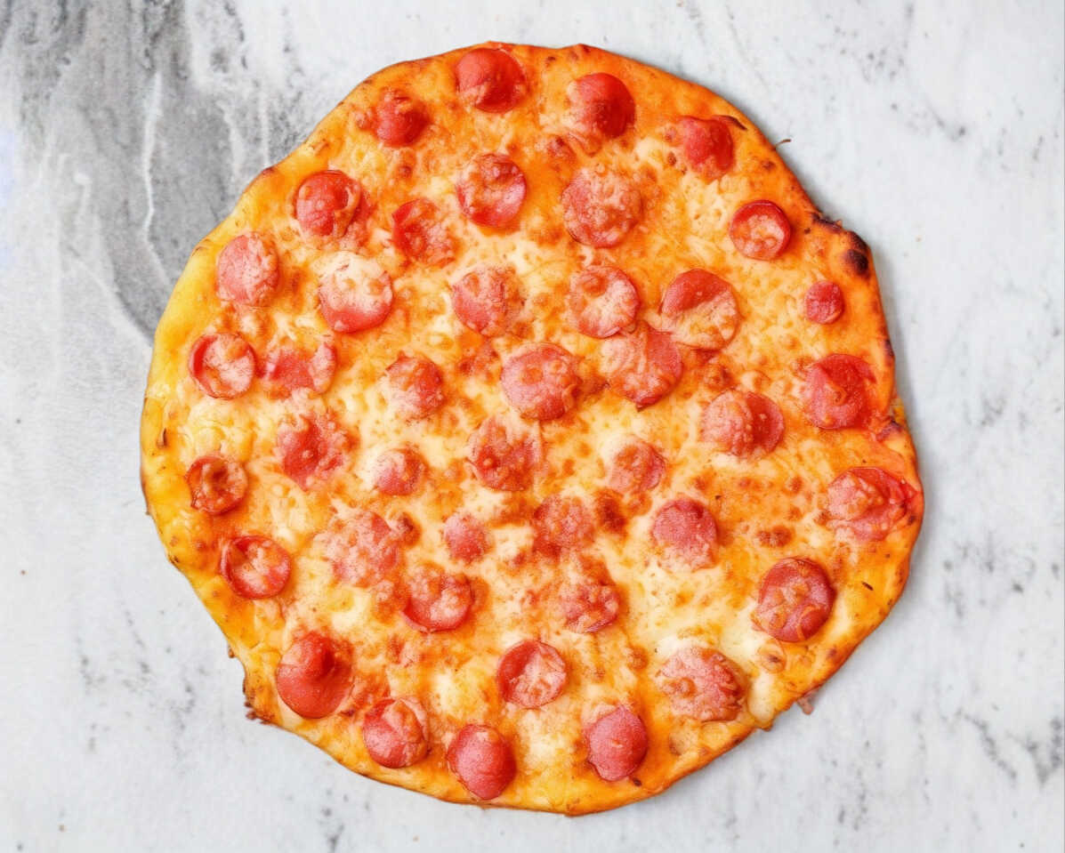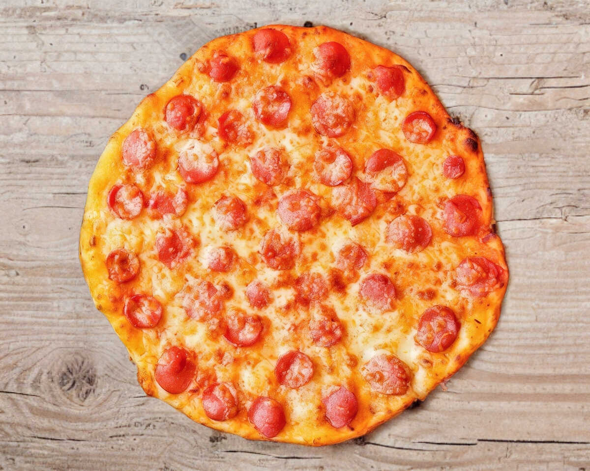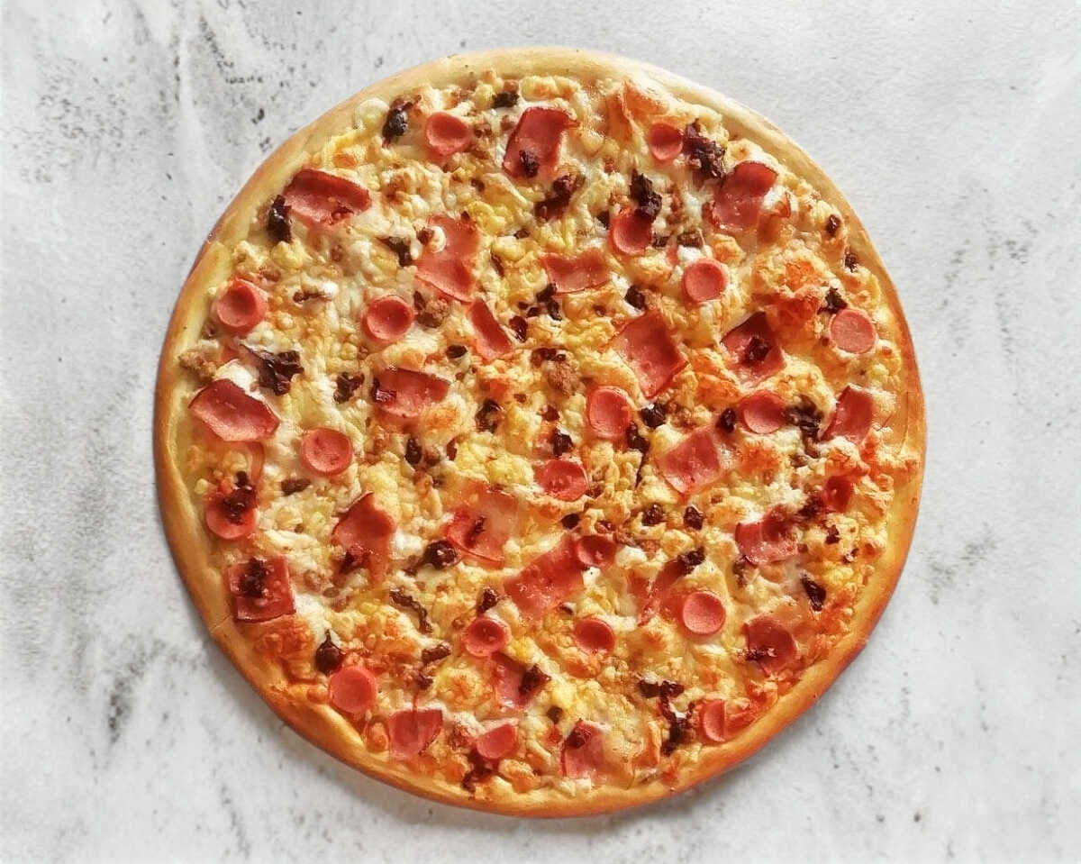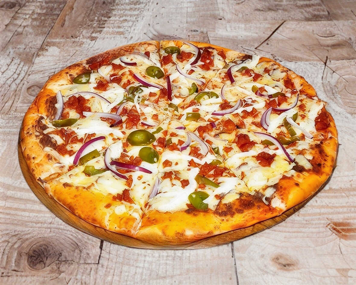 Jamón, pepperoni, salchicha, queso amarillo, chorizo y queso premium.