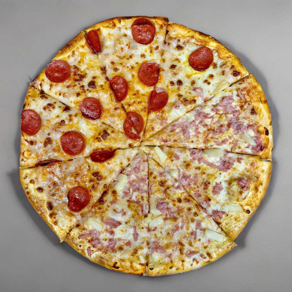 Mitad hawaiana mitad peperoni
