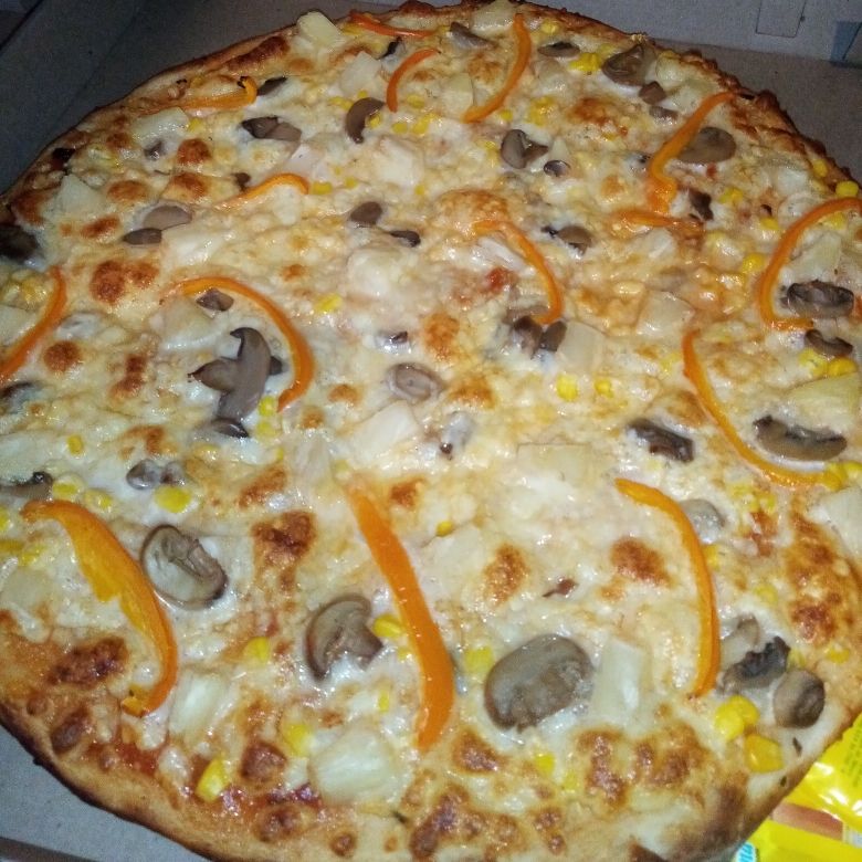 Queso base mozarella, pimiento morron, champiñon y piña.