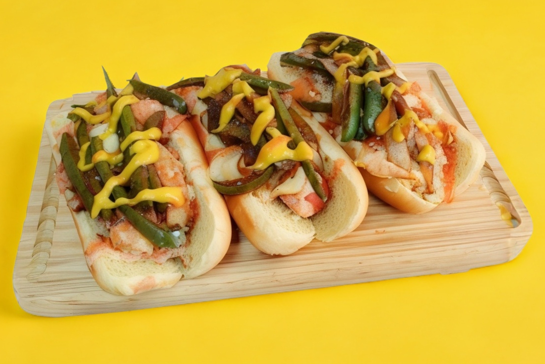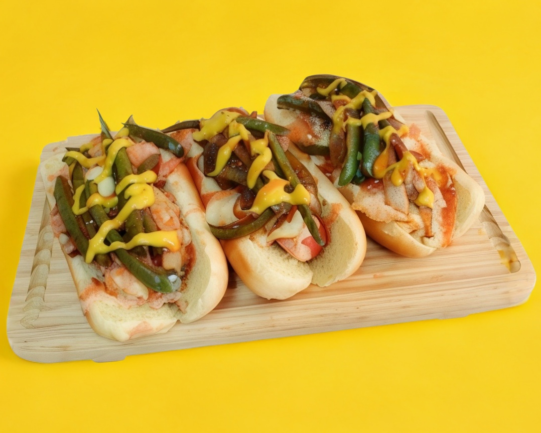 85g de carne preparada, salchicha, queso oaxaca y queso amarillo, lechuga, jitomate, cebolla y chiles caseros.