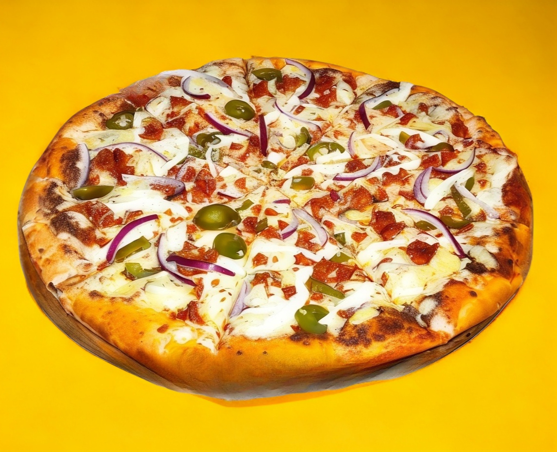 Jamón, pepperoni, queso amarillo, chorizo y queso premium