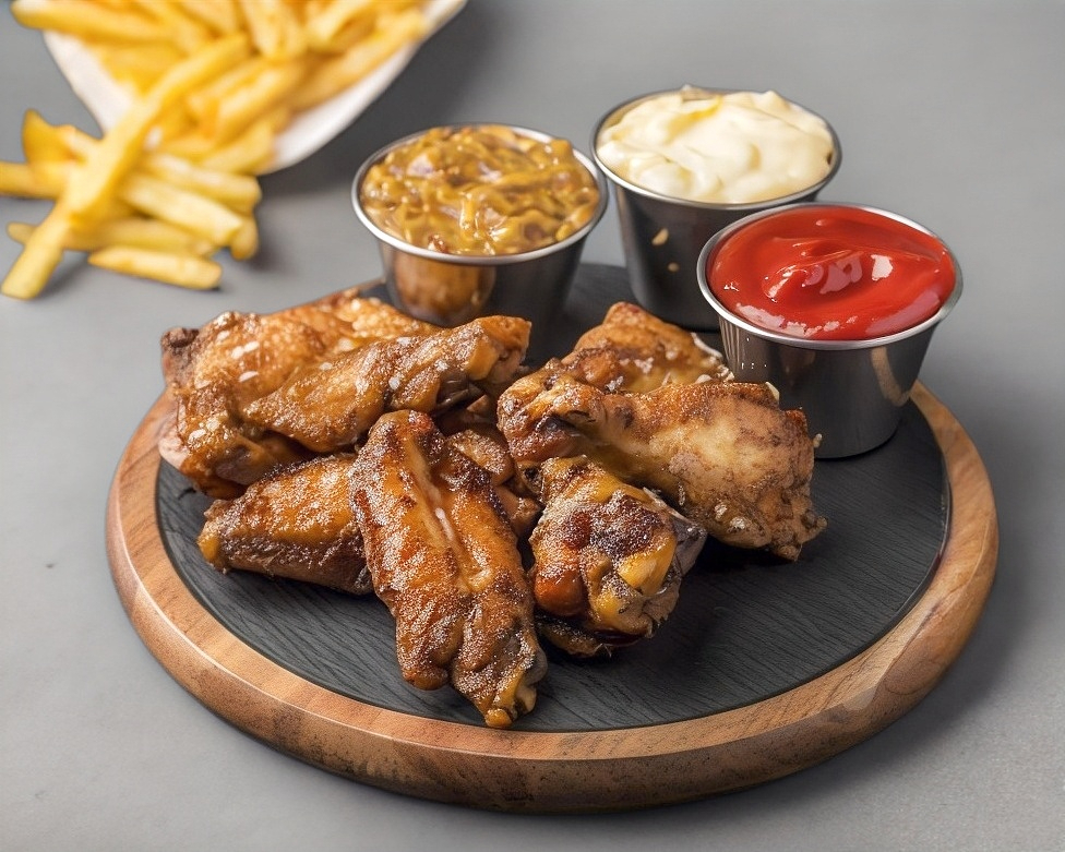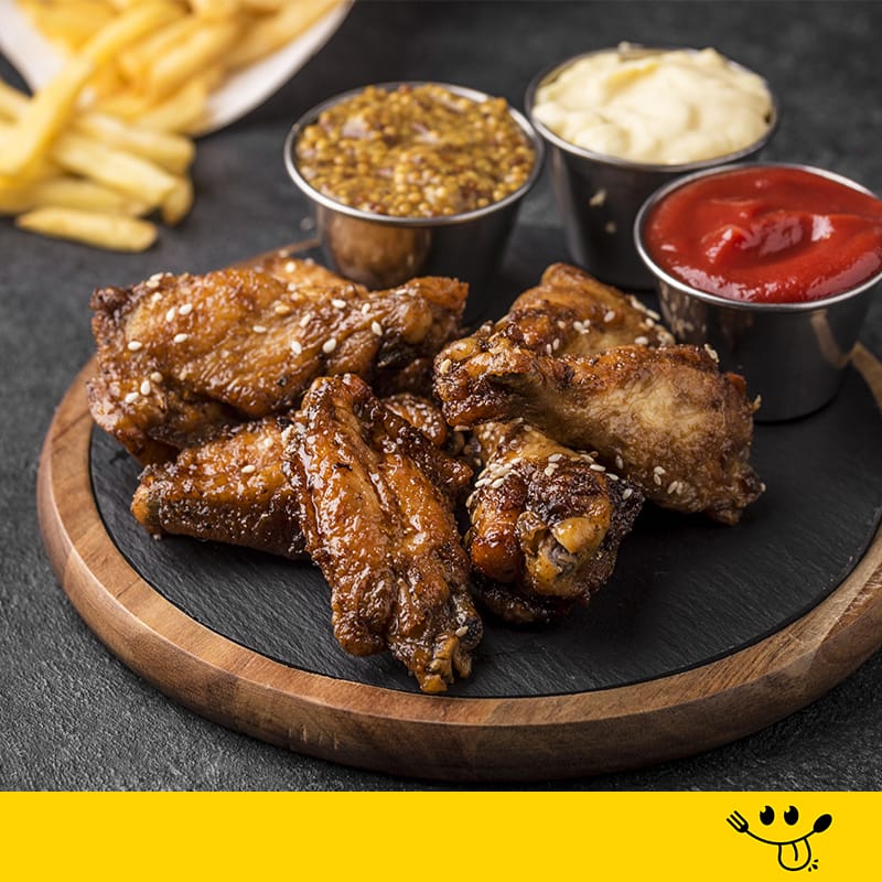 Alitas 12 pz crujientes y jugosas, bañadas en la salsa de tu elección.
