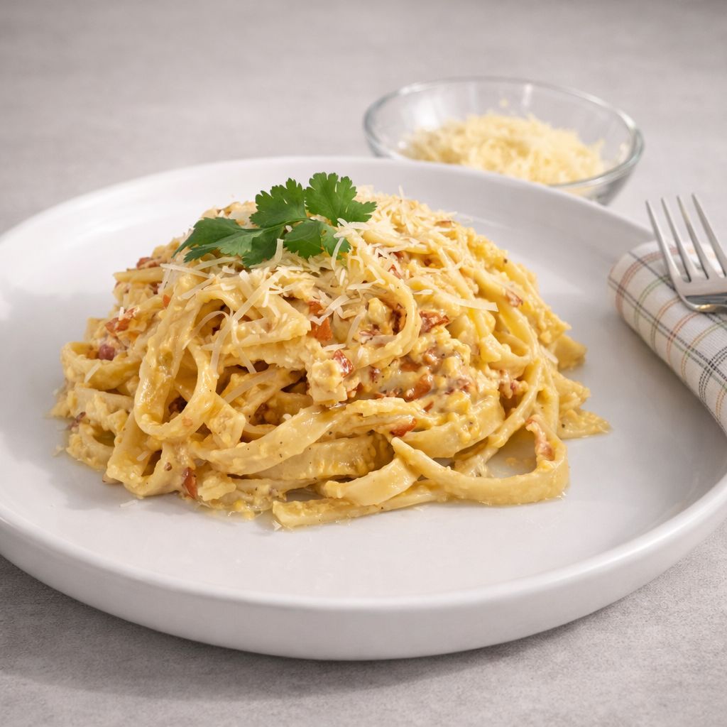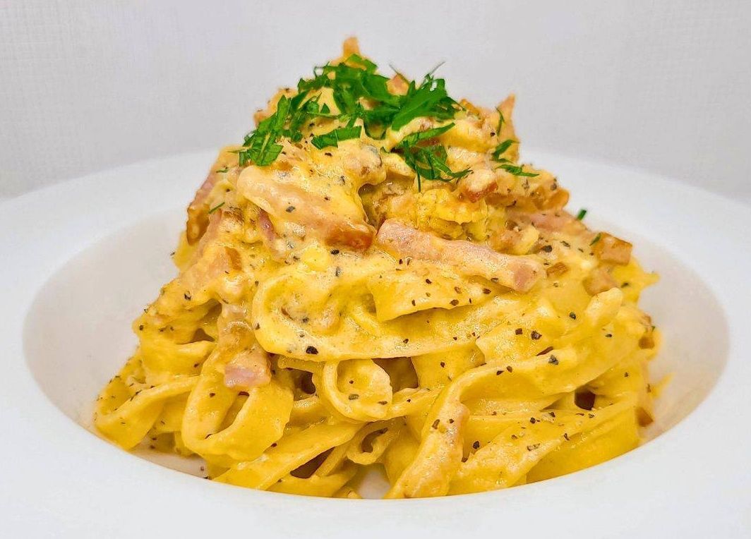 salsa carbonara a base de huevo, tocino y parmesano (400g)