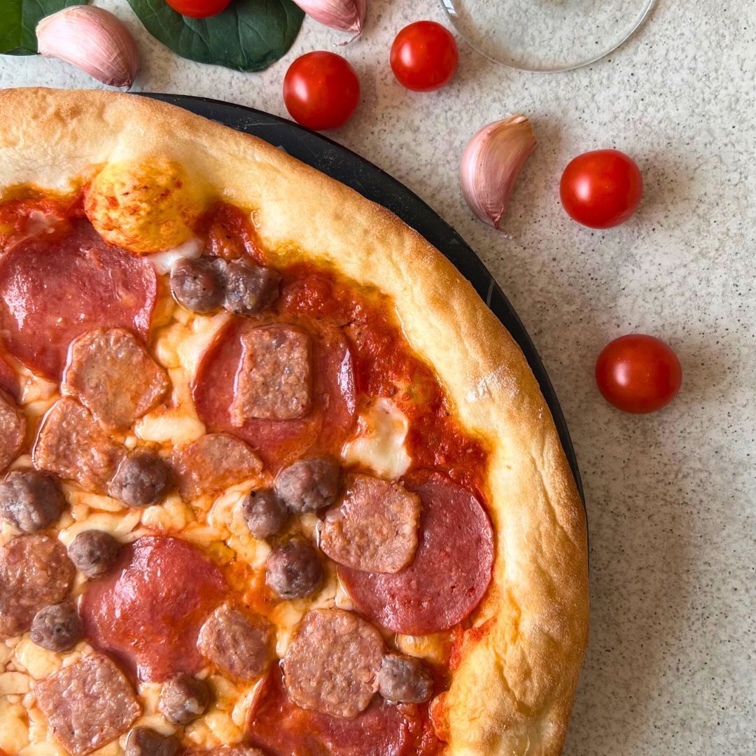 mozzarella, chorizo italiano, salame y bolitas de carne, 30cm