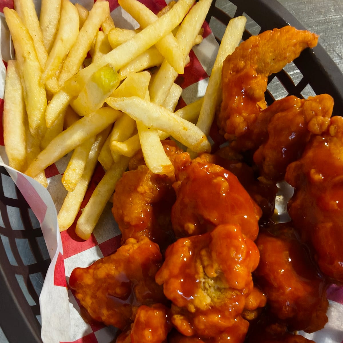 Papas a la francesa con boneless.