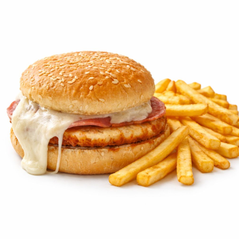 Hamburguesa Hawaiana con Piña, Queso Oaxaca*1 + papas*1