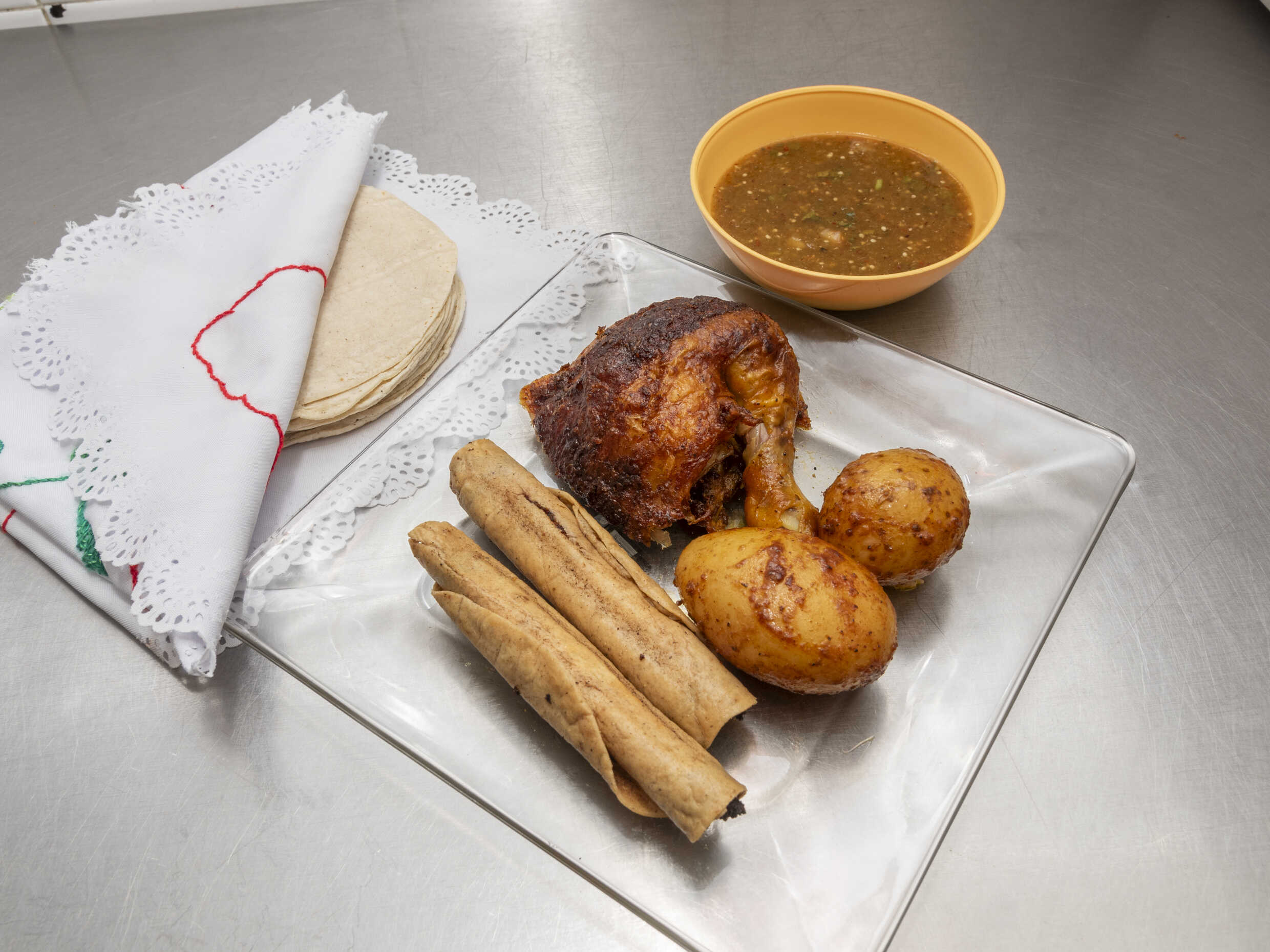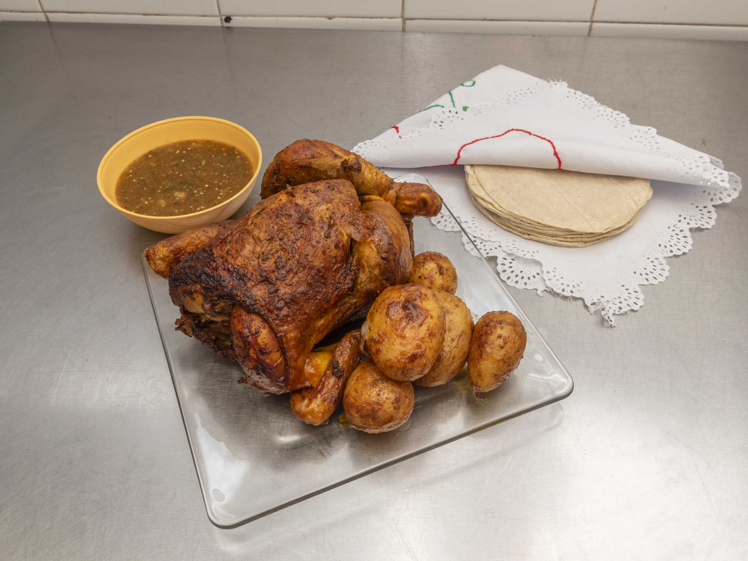 1 pechugón a precio especial, incluye salsa y tortillas