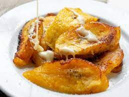 Plátano macho frito con los ingredientes de su agrado, chispas de chocolate y galletas marias
