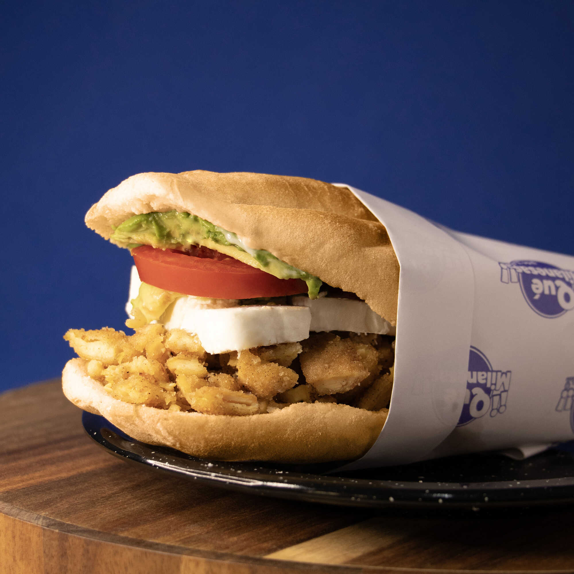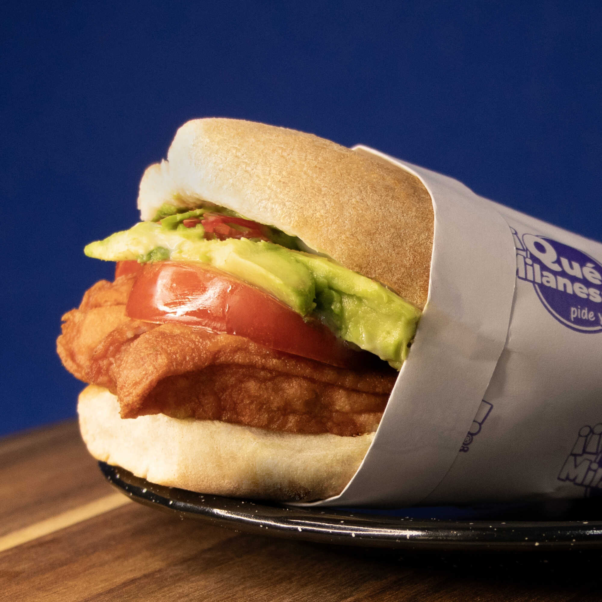 Torta de Milanesa de Pollo con Crema , Aguacate y Jitomate.