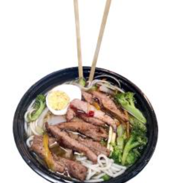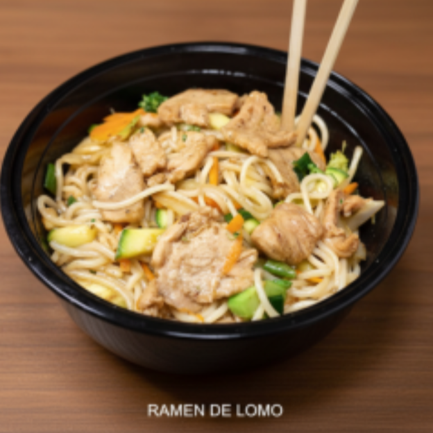 250 g De fideos, 100 g de arrachera (peso crudo), medio huevo cocido, brócoli, apio, calabaza, zanahoria, cebolla y fondo especial de la casa.