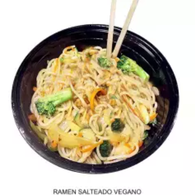 300 g De fideo salteado al wok, sin fondo, 100 g de arrachera (peso crudo) con brócoli, apio, zanahoria, calabaza y cebolla.