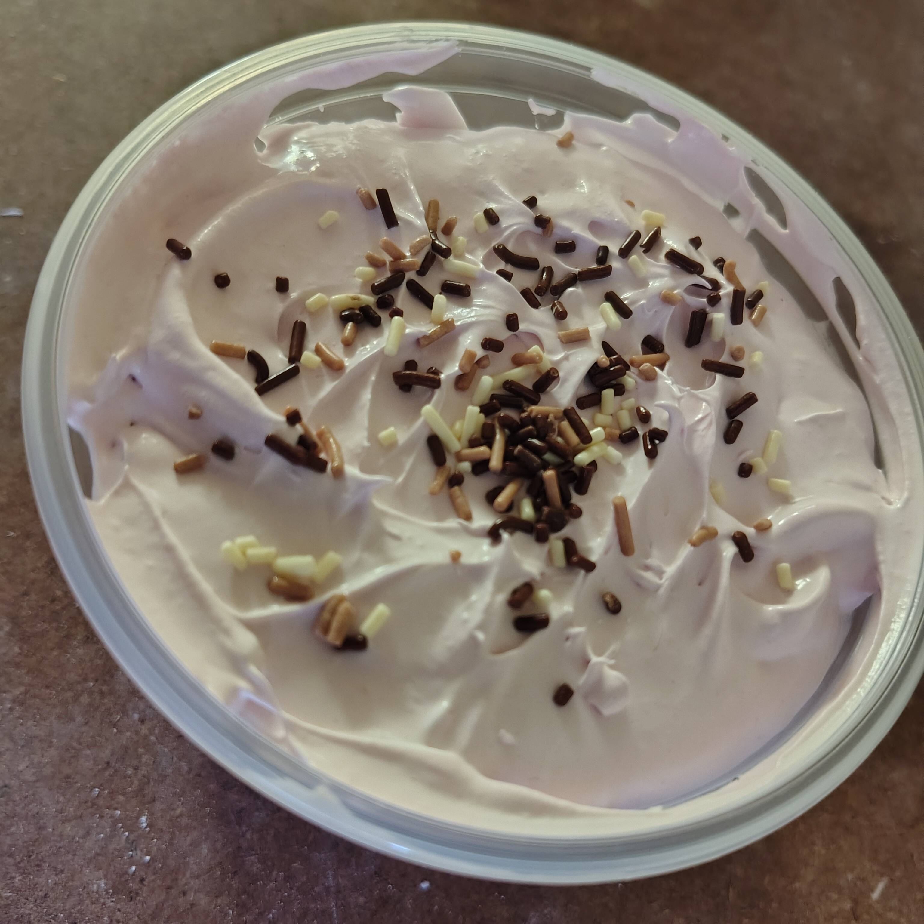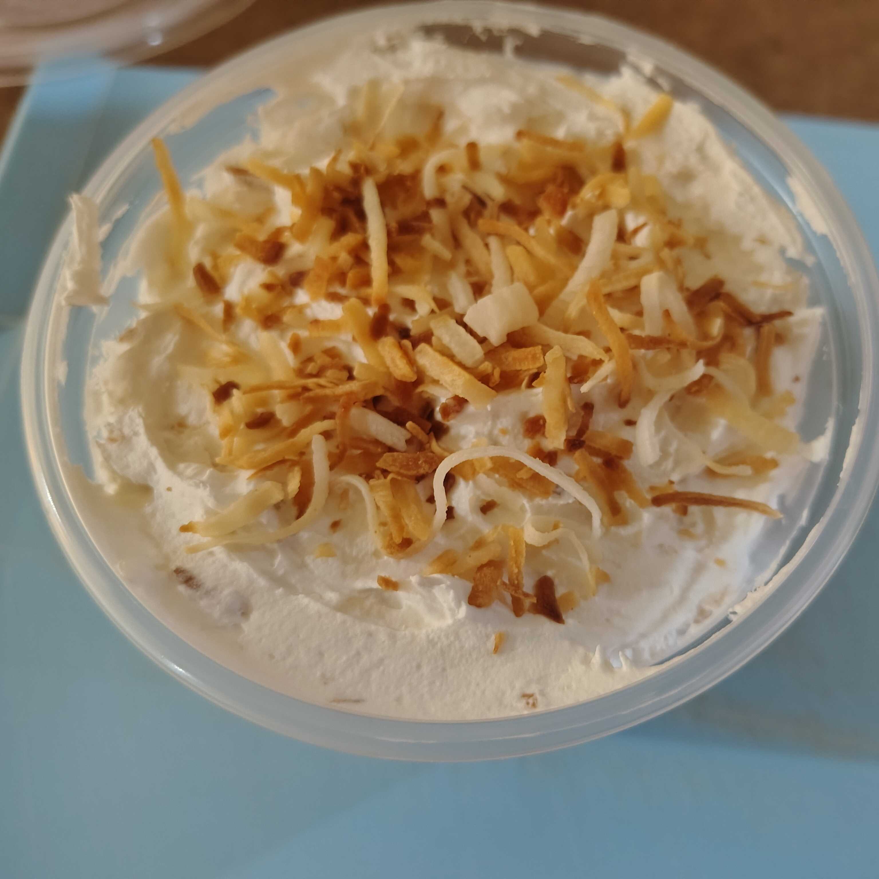 Delicioso helado de crema de coco con tiritas de coco tostado