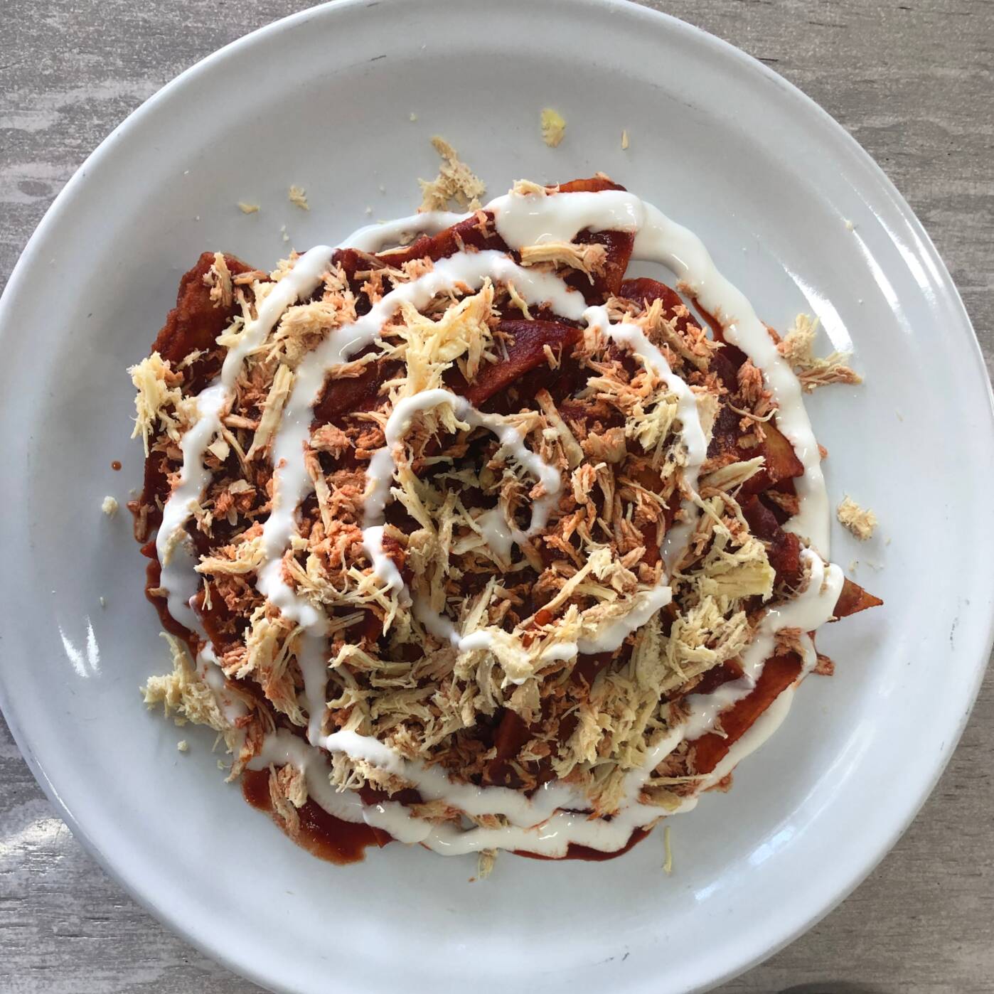 Bañados en salsa de tu elección. Por defecto son preparados con pollo desebrado encima, al seleccionar un topping el pollo deshebrado es remplazado por el topping seleccionado.