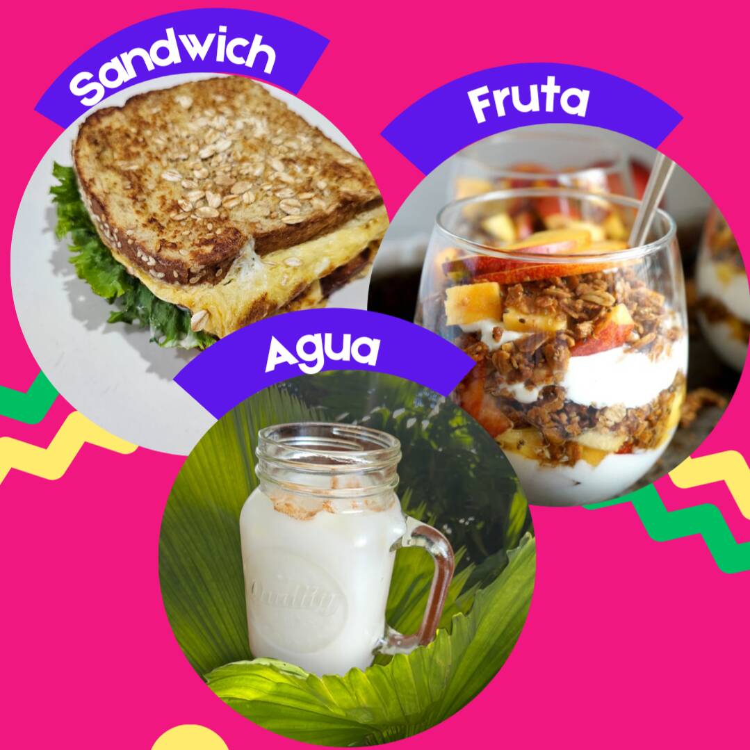Sándwich Ricozel*1 + Fruta con Yogurt 🍎🍌🍯*1 + Agua de Fruta Natural 500 ML.*1