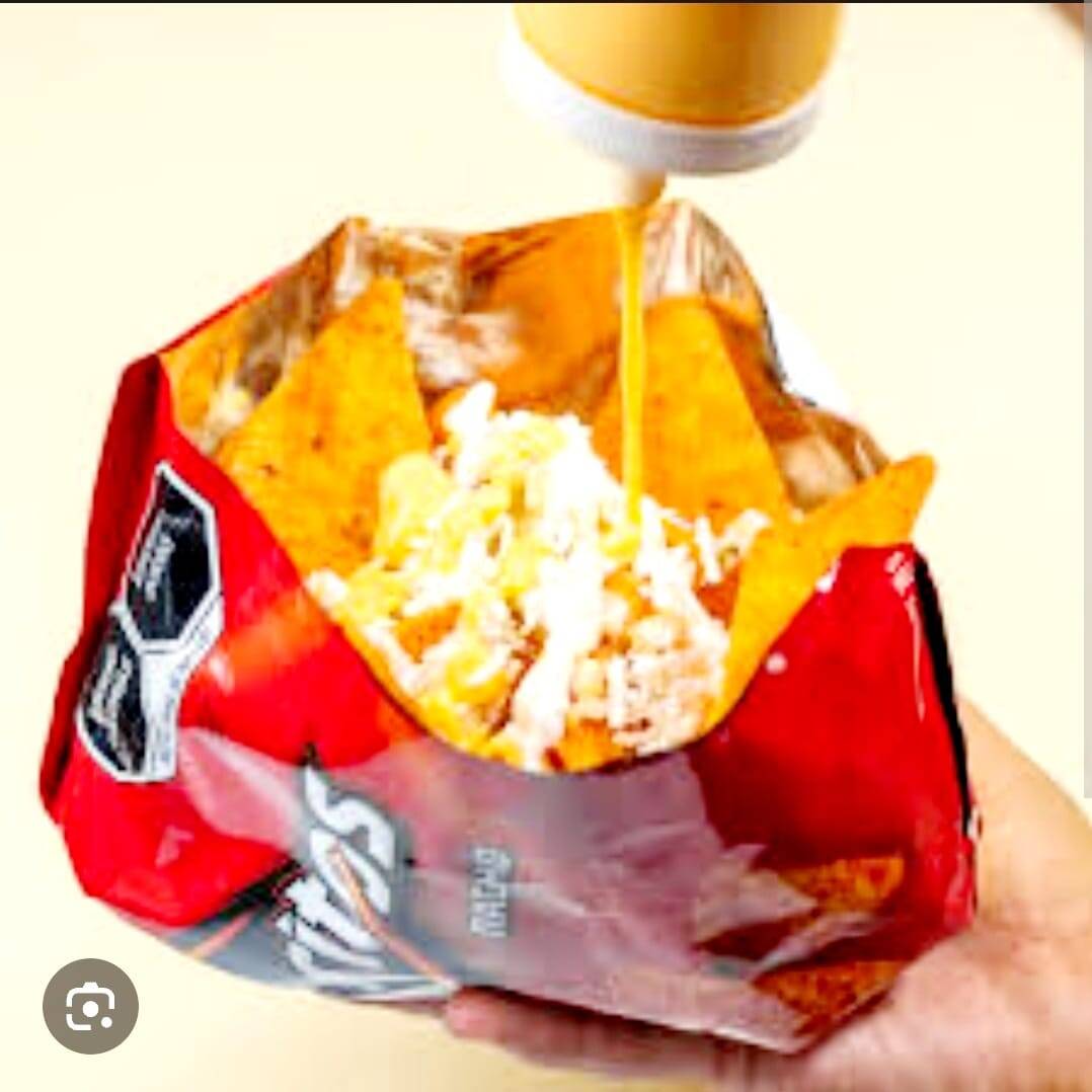 Doritos acompañados con esquites, servidos con mayonesa, queso amarillo, queso rayado, limón y picante, (valentina y/o piquin)