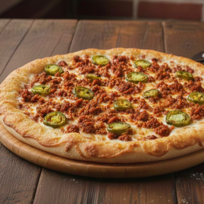 PIZZA DE CHORIZO, Con una cama de frijoles y coronado con jalapeños, Elige el nivel de ahumado que prefieras; suave y sutil para realzar los ingredientes o intenso y robusto para un sabor mas atrevido. Combinala con nustras creaciones unicas de aderezos, cada mordida es una explosión de sabor y personalidad.