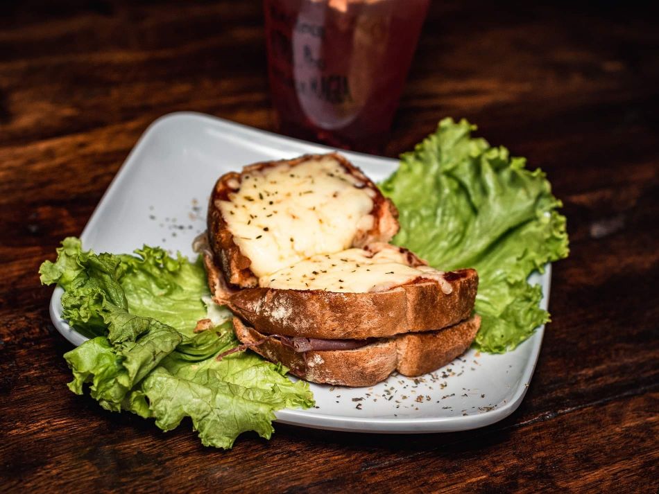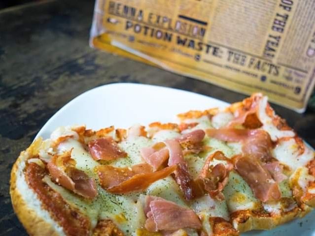 Pan de ajo con salsa napolitana, queso mozzarella, jamón serrano, tocino y especias italianas.