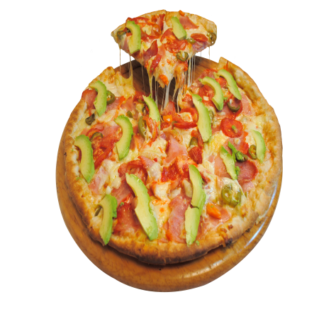 Pizza mediana especial 30 cm con champiñón, cebolla, pimiento, aguacate, refresco de 400 ml y otra pizza mediana a elegir.