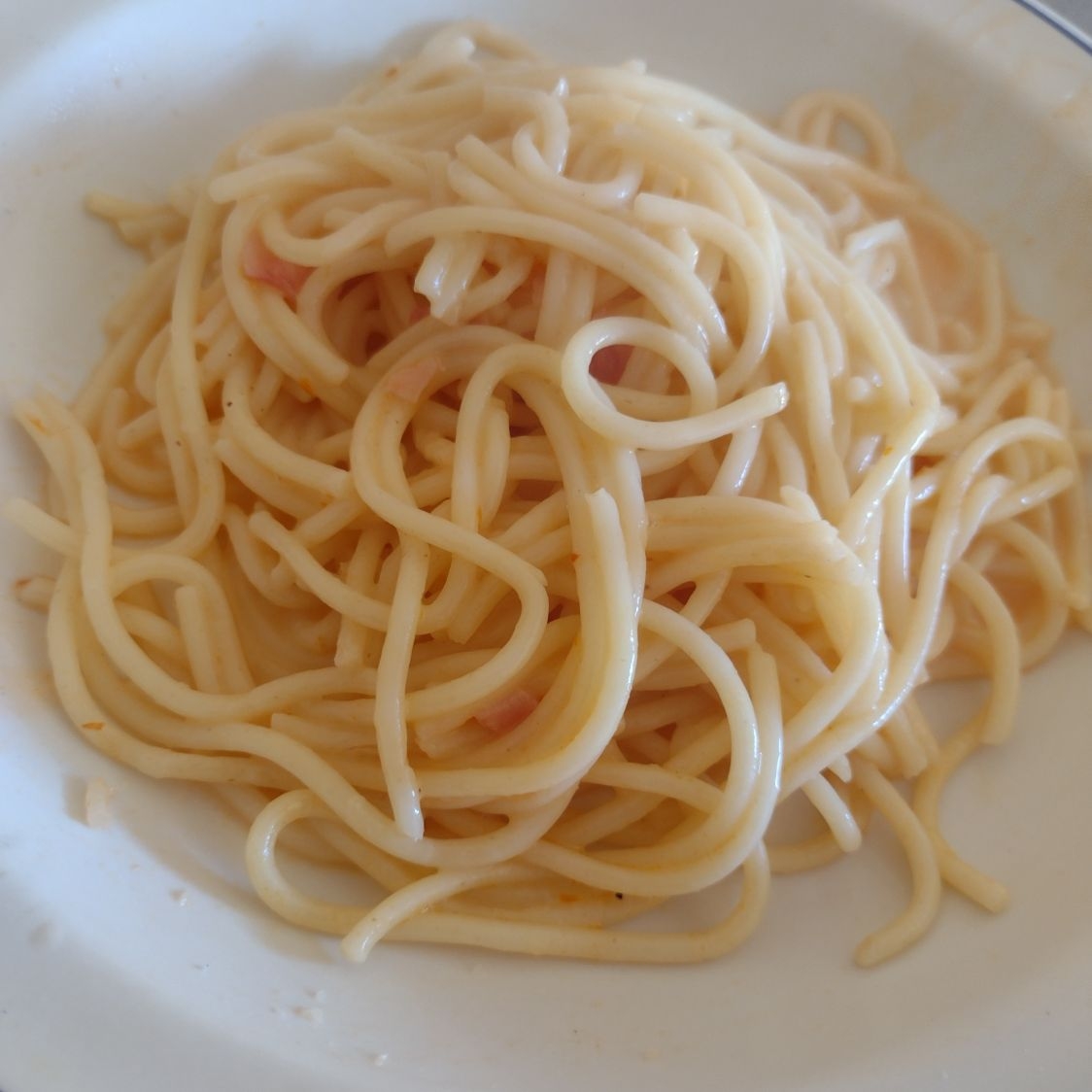 Sopa de pasta preparada en salsa de jitomate rojo con crema, acompañado de jamón