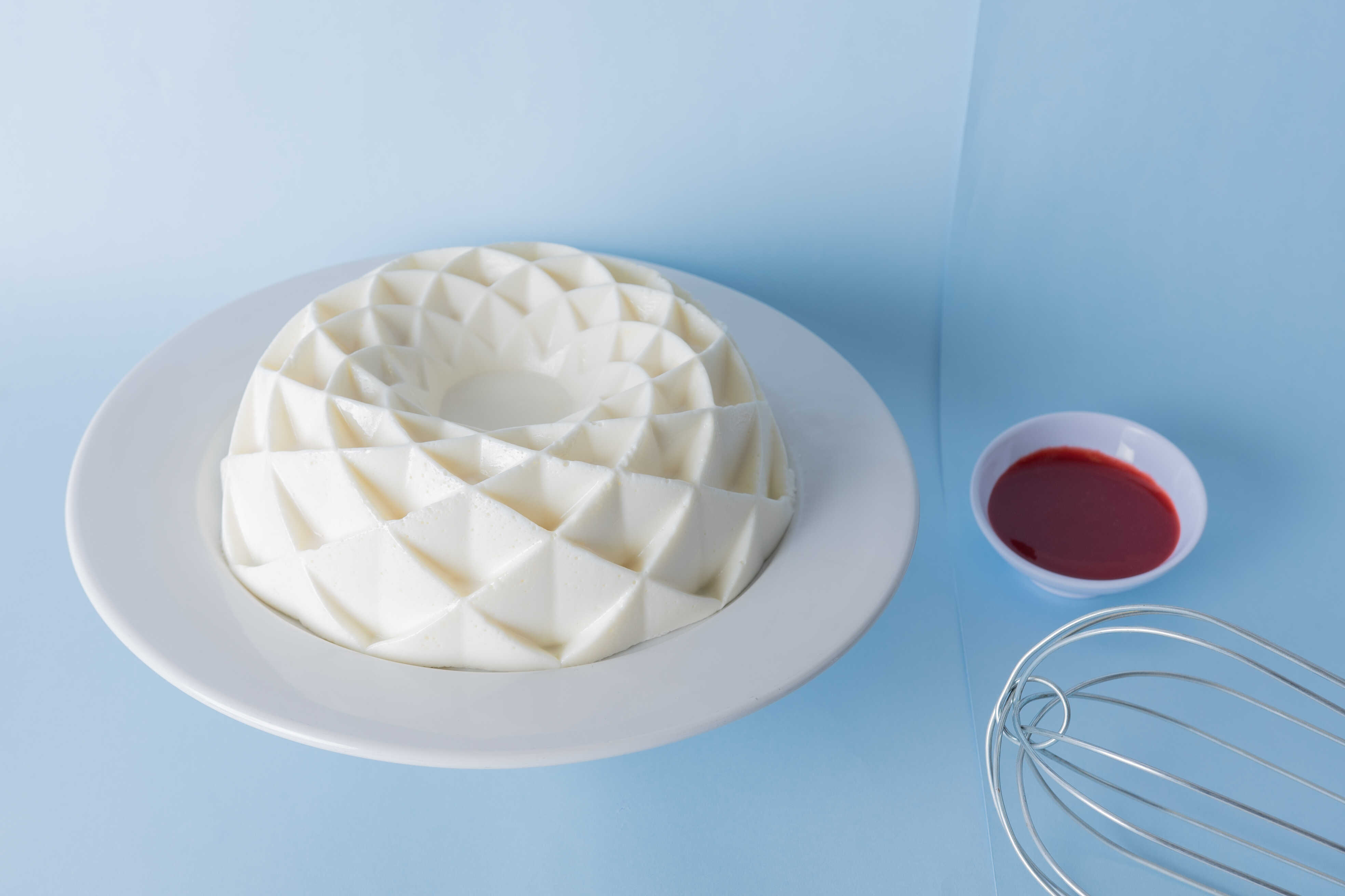 Suave gelatina tipo mousse de yogurt natual con una fresca salsa de fresa natural.