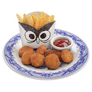 A Elegir:- Hamburguesitas (2 pza.) o Nuggets (7 pzas.) o dedos de queso (5 pza.)