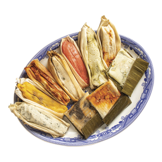 (De hoja de maíz (Rajas con queso o Verdes o Mole o Dulce) o Costeño ( Verdes o Rojos o Mole)