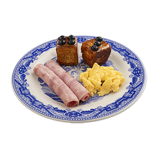 Huevo, tocino, hot cake y salchicha (220 g).Incluye:Jugo de naranja (224 ml), Jugo zanahoria (224 ml),Jugo piña (224 ml),Fruta papaya (150 g), Fruta sandía (150 g), Fruta melón (150 g)