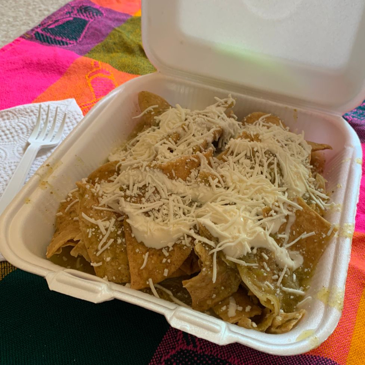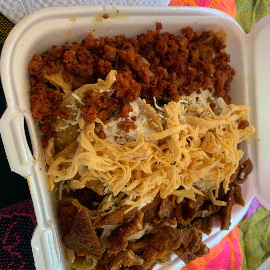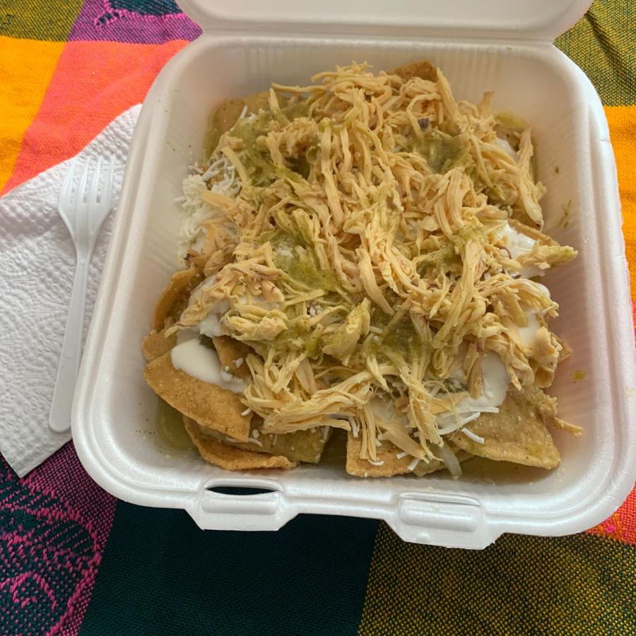 Totopos con pollo bañados en nuestra deliciosa salsa verde o roja, con queso y crema