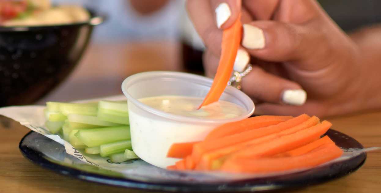 200 grs, bastoes de apio y zanahoria acompañados con aderezo ranch.