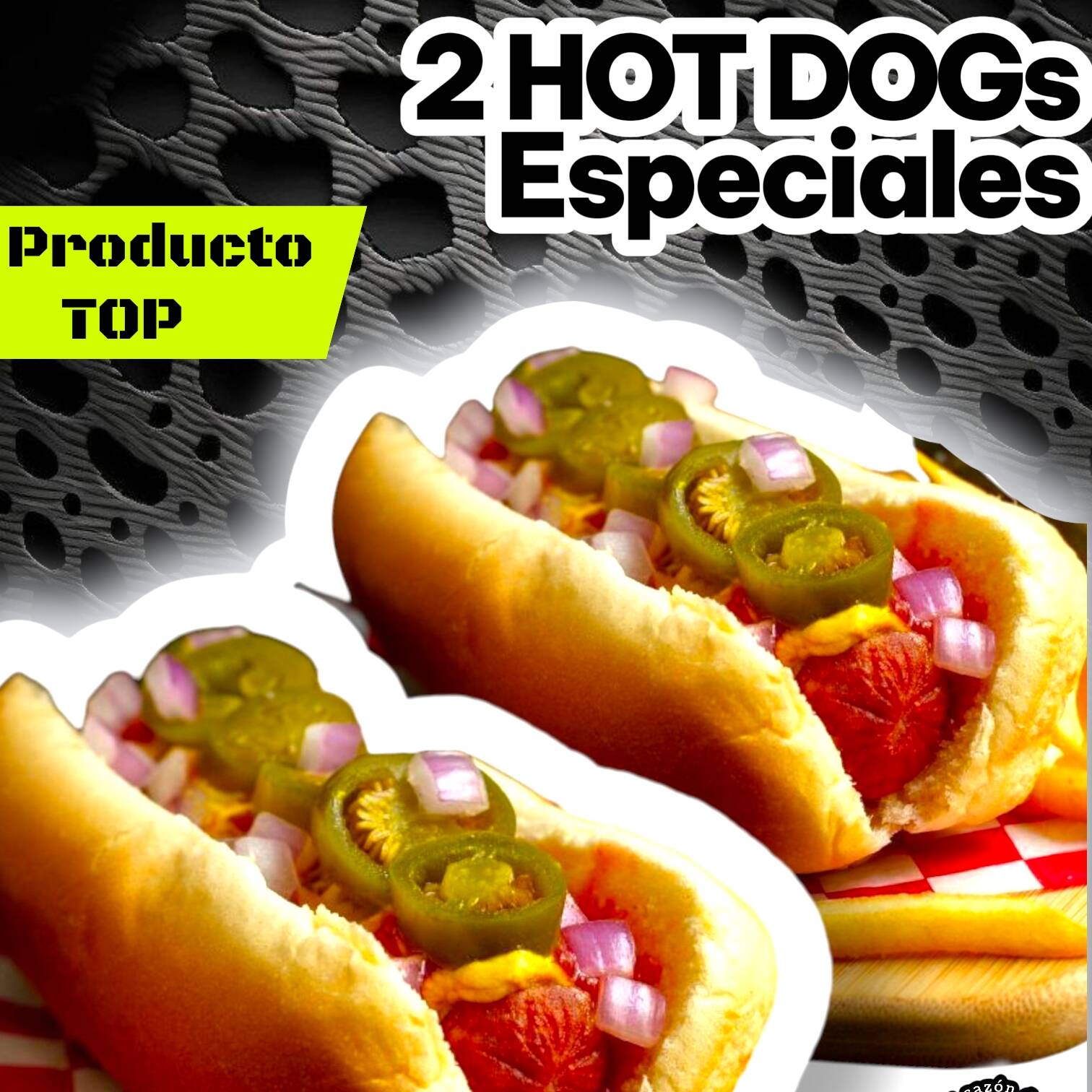 Incluye: 2 hot dogs, jitomate, cebolla & chiles