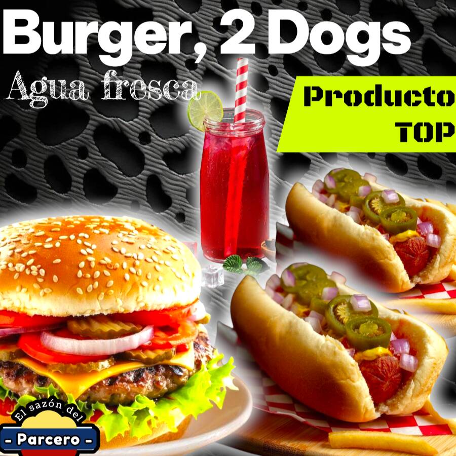 1 Burger de carne + 2 Hotdogs + Agua