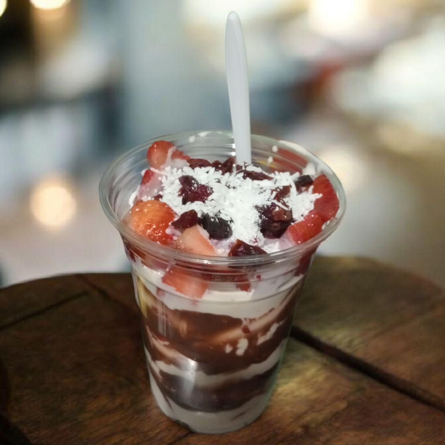 Vaso de fresas con crema de 16oz con toppings a elegir