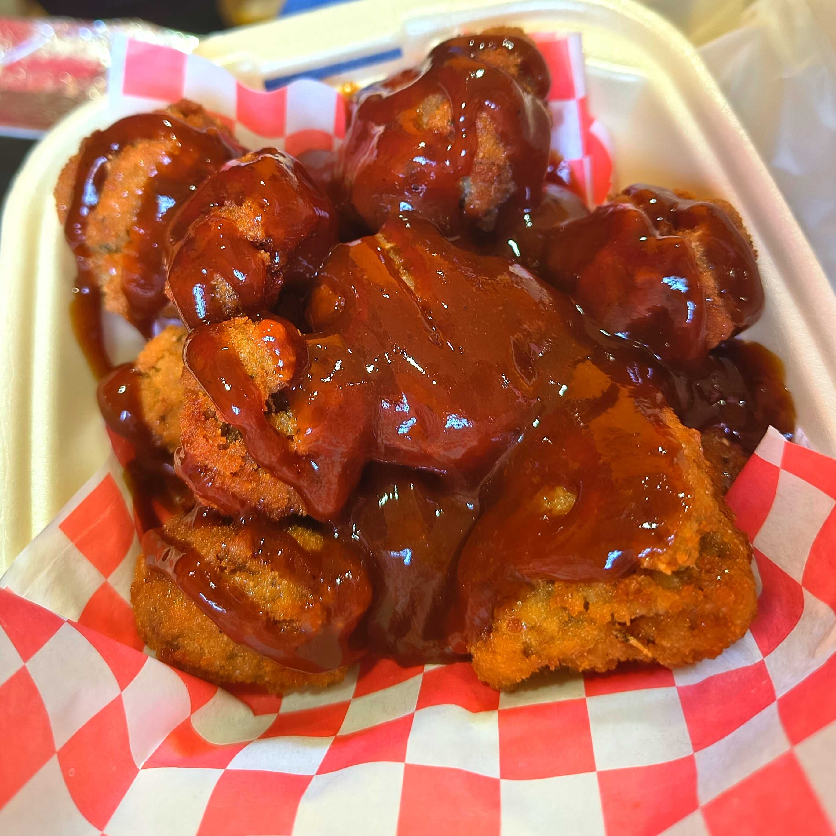 350 gramos (peso en crudo) aproximadamente 13 piezas. Escoje entre salsa BBQ o picante (salsa acidita con chiles secos) Con salsa picante se incluye aderezo Ranch. Especificar en comentarios la salsa a elejir.