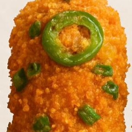 Relleno a elegir envuelto en nuestra masa y empanizador, espolvoreada de Chips Jalapeño.
