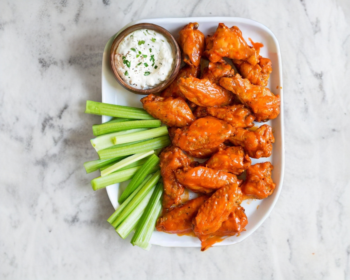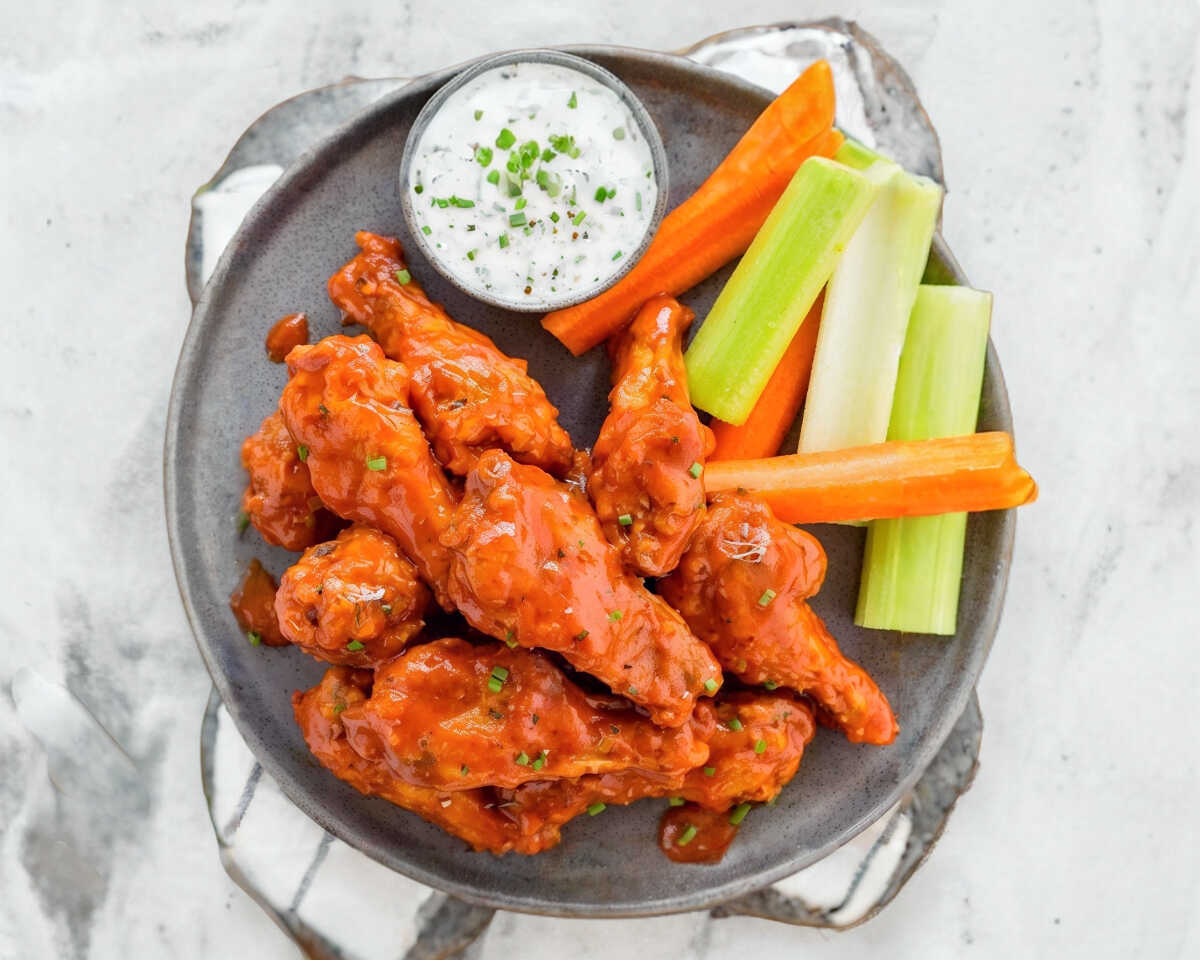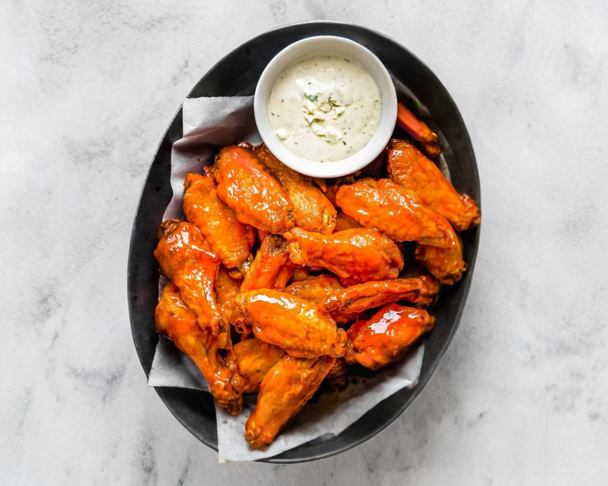 Alitas sazonadas en casa crujientes, con la salsa de tu elección.