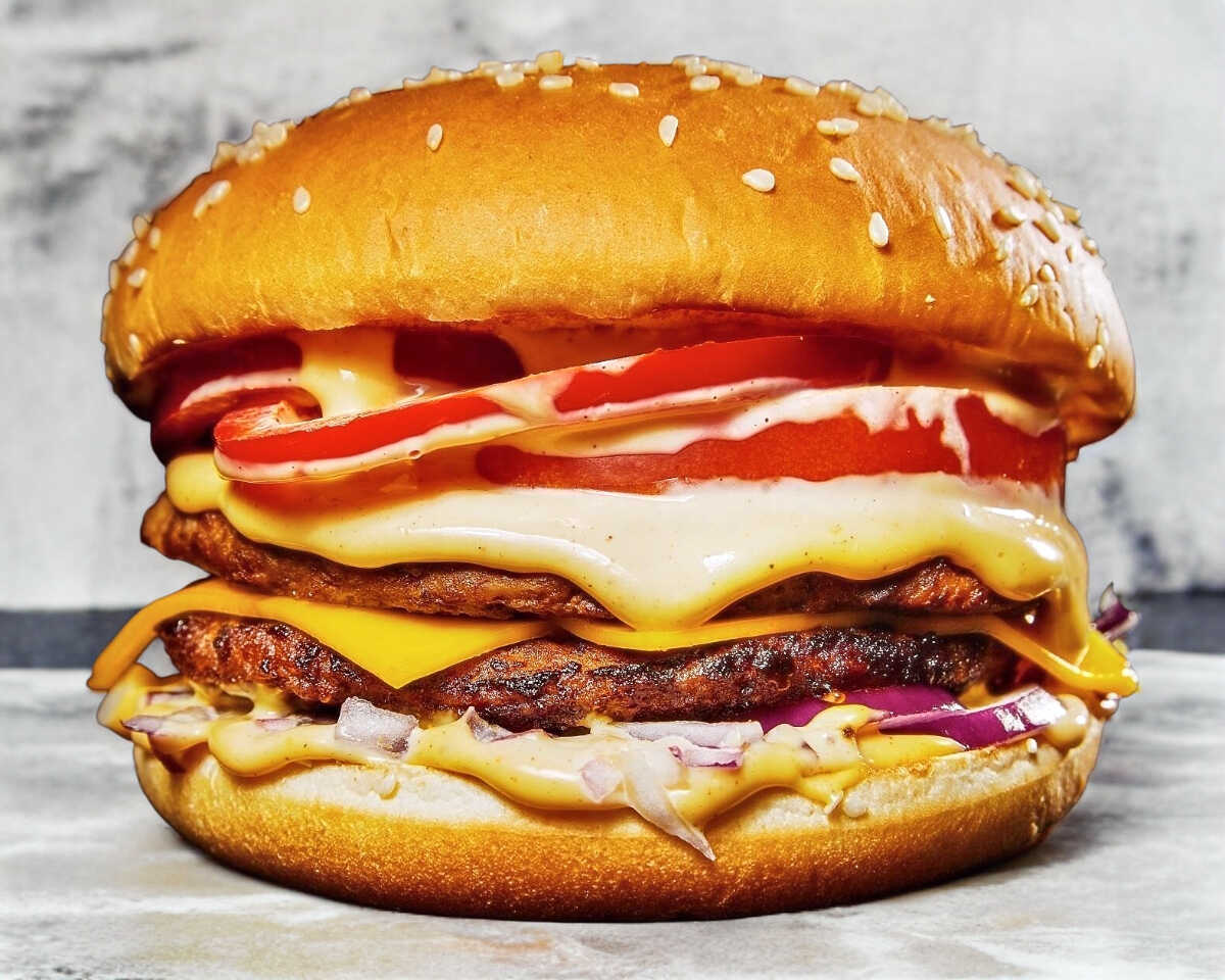 Doble capa de carne sirloin, queso cheedar, tocino, lechuga y jitomate.