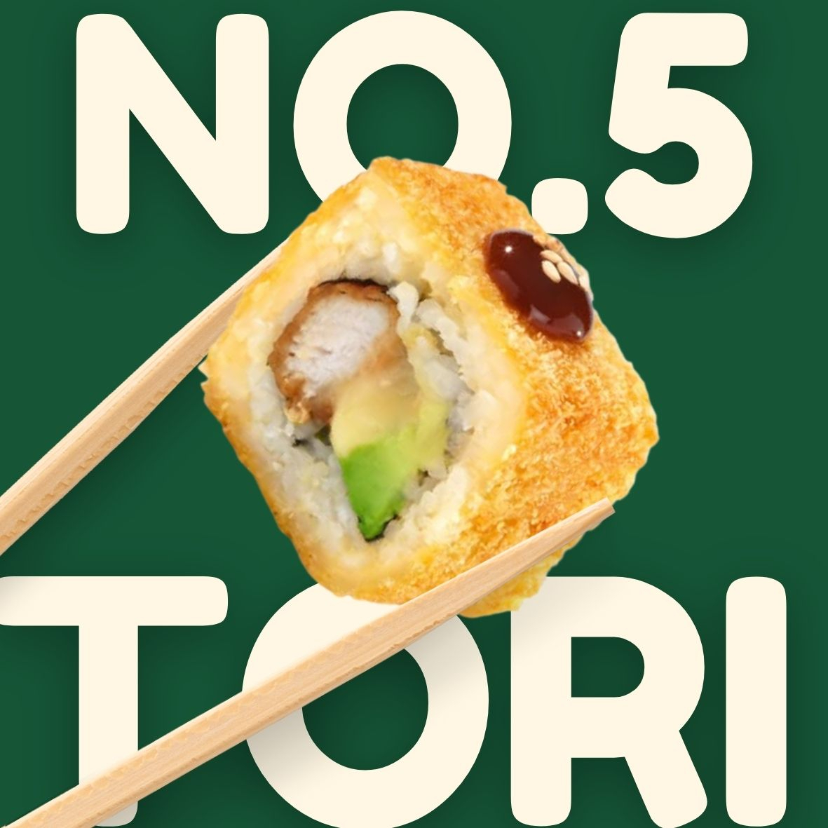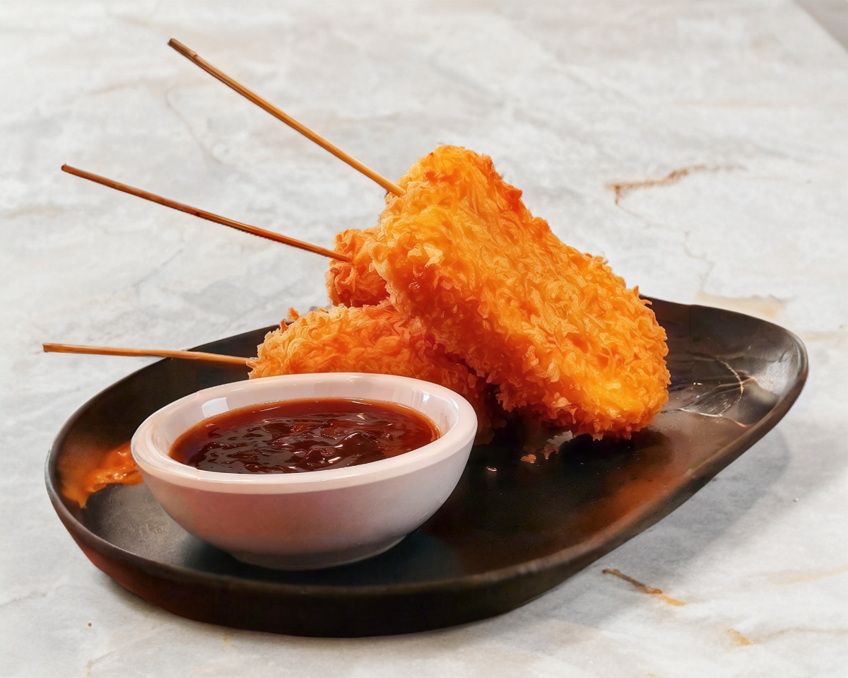 Fuera: Empanizado con Panko / Dentro: Pollo Empanizado, Queso Crema y Aguacate / Acompañado: Salsa Tonkatsu
