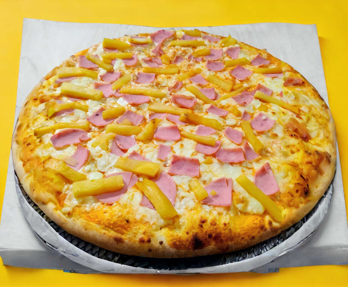Pizza grande 8 rebanadas de Piña, jamón y queso.
