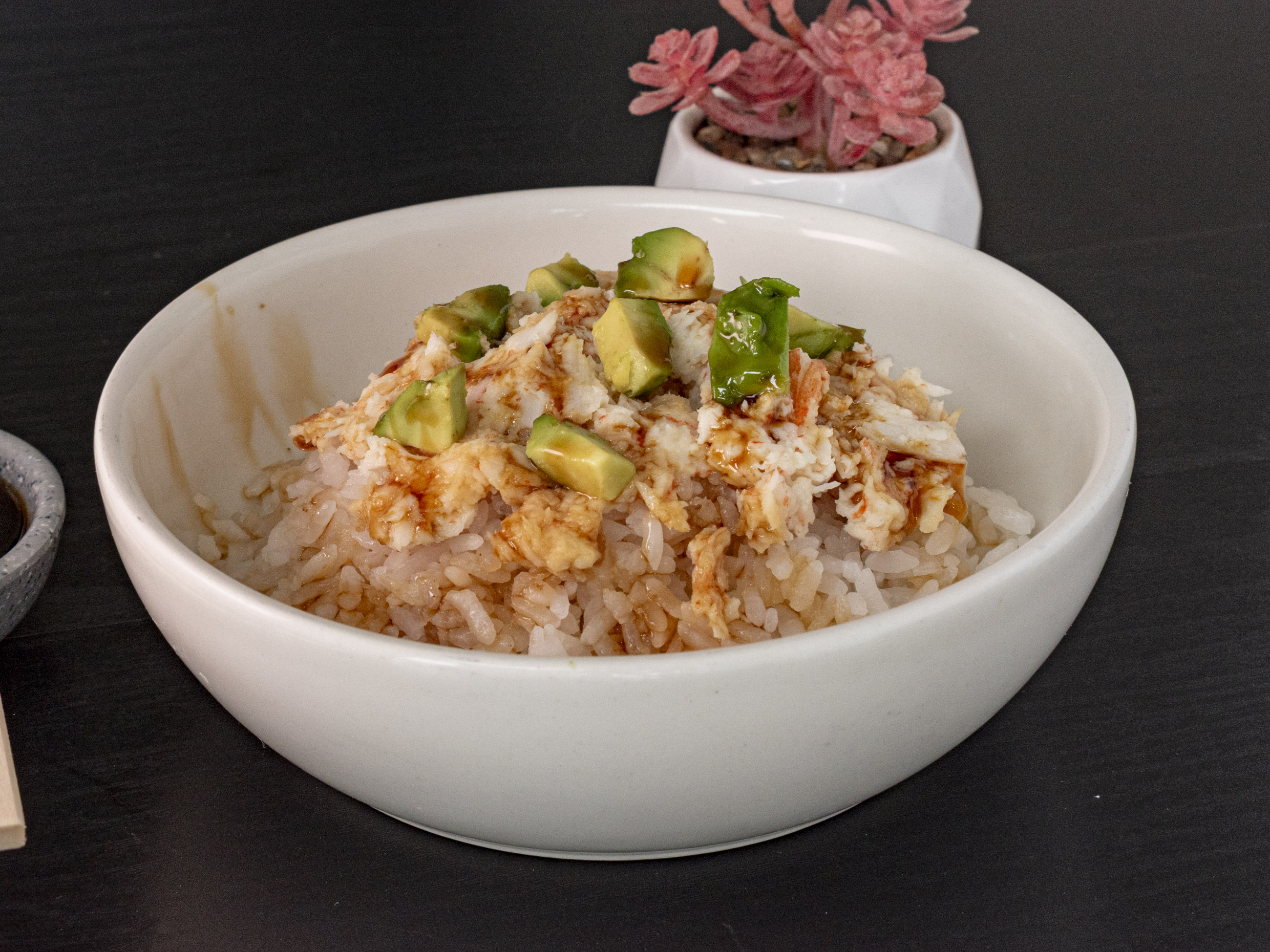 Arroz Gohan, tampico, aguacate, salsa de anguila