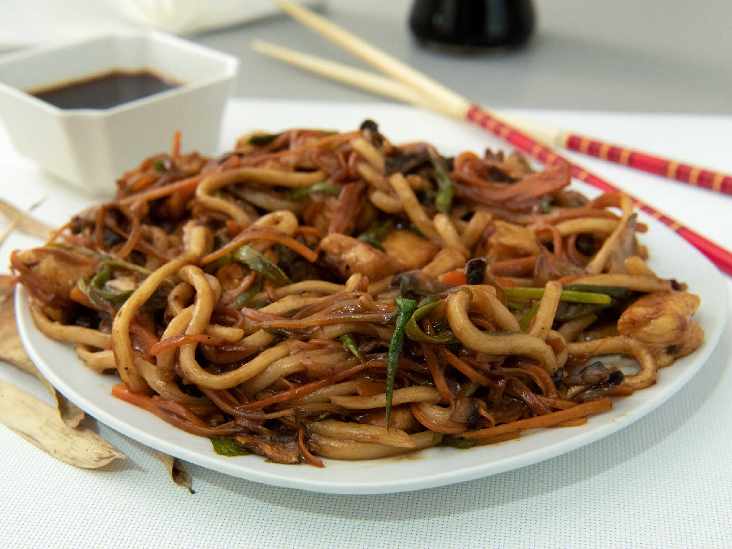 Zanahoria,champiñon,cebollin,filete de res,pasta soba y salsa especial