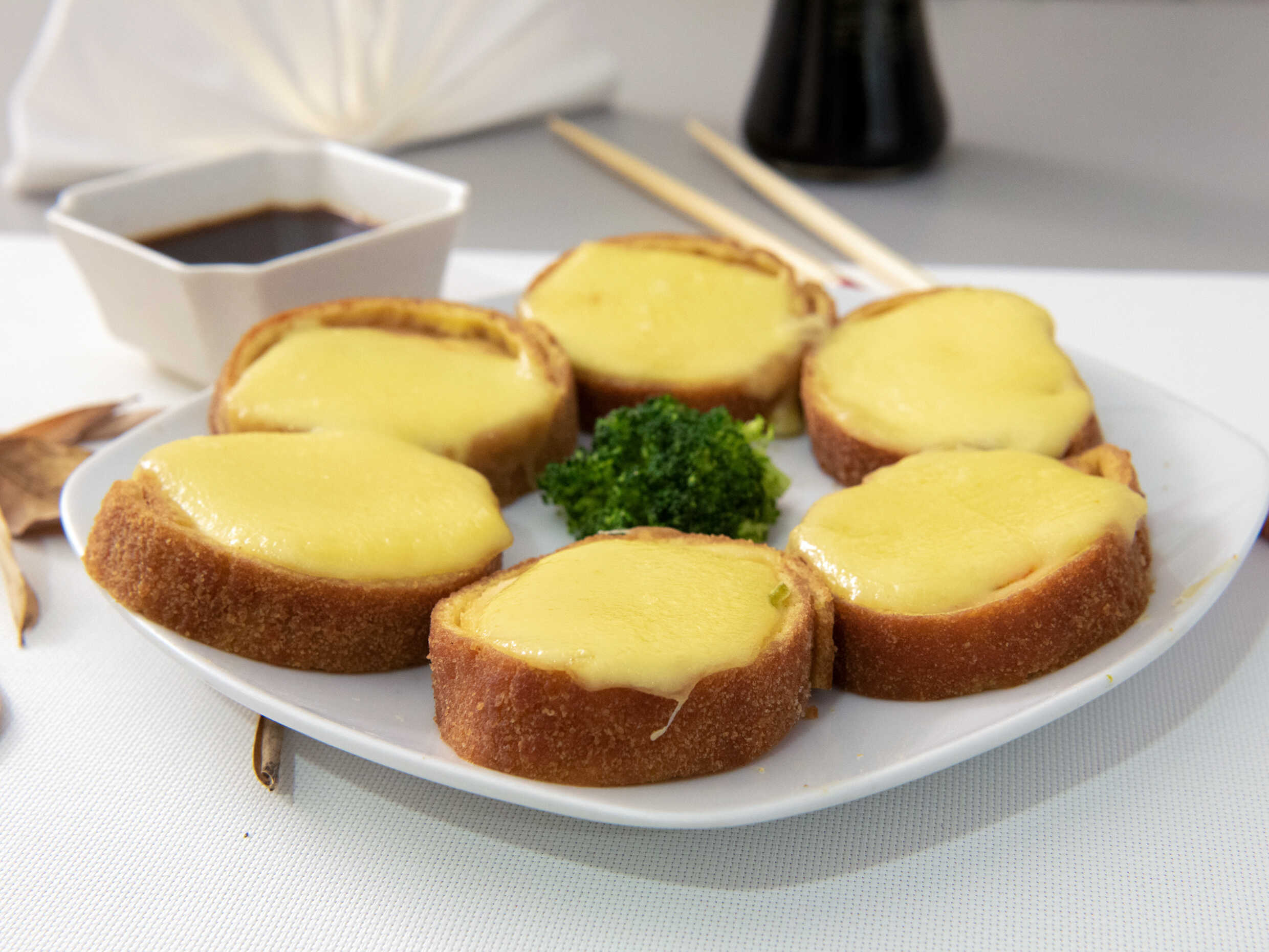 5 piezas de surimi con queso Philadelphia empanizados.