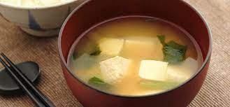 Sopa de soya con queso tofu.