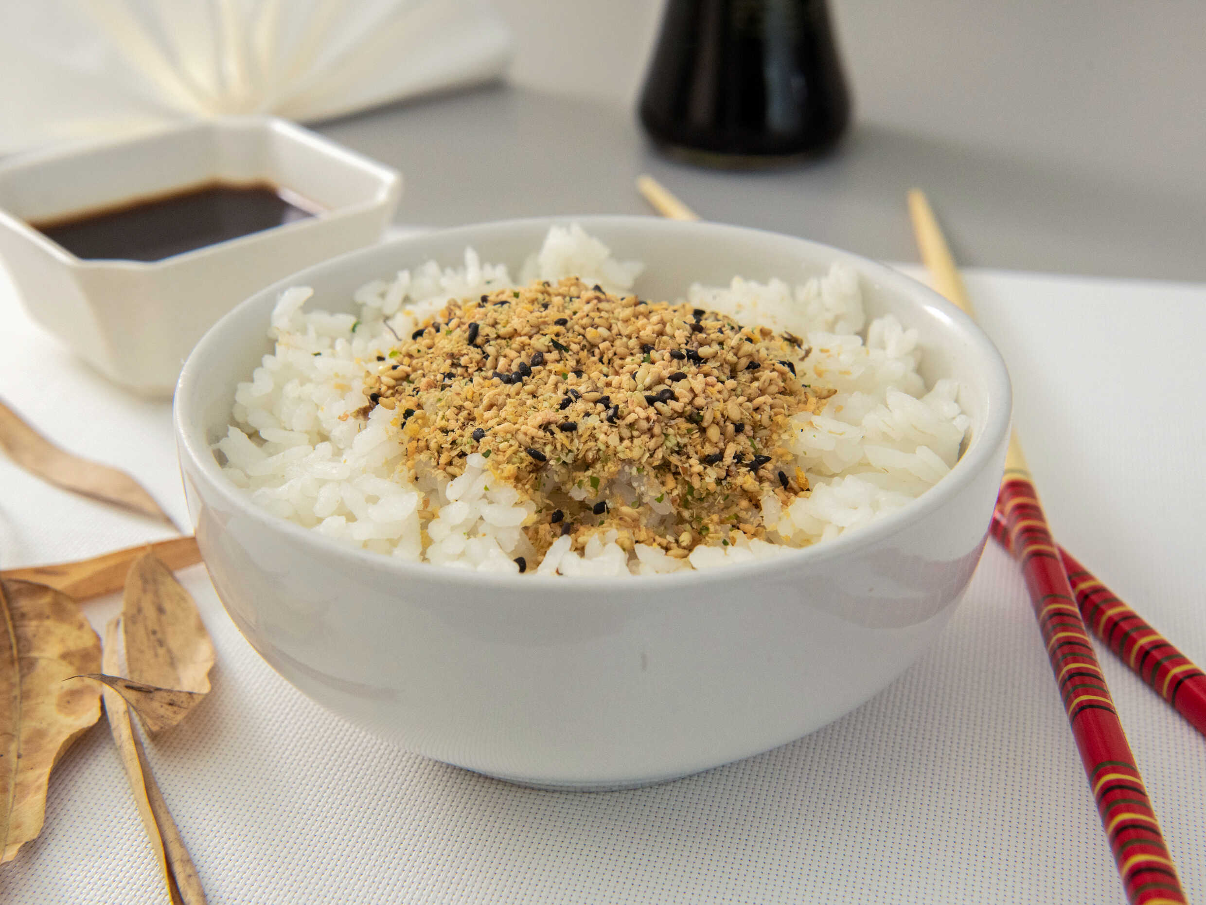 Arroz al vapor con condimento de salmon