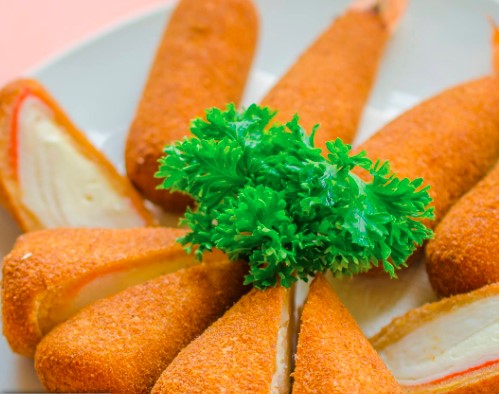 Surimi relleno de queso empanizado.