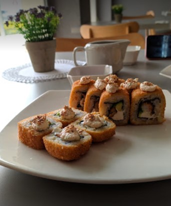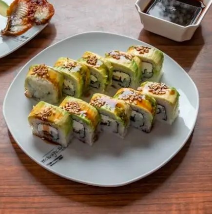 Anguila con queso y aguacate por fuera