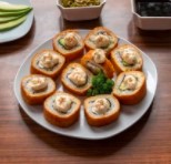 10 piezas de camarón relleno de queso empanizado.
