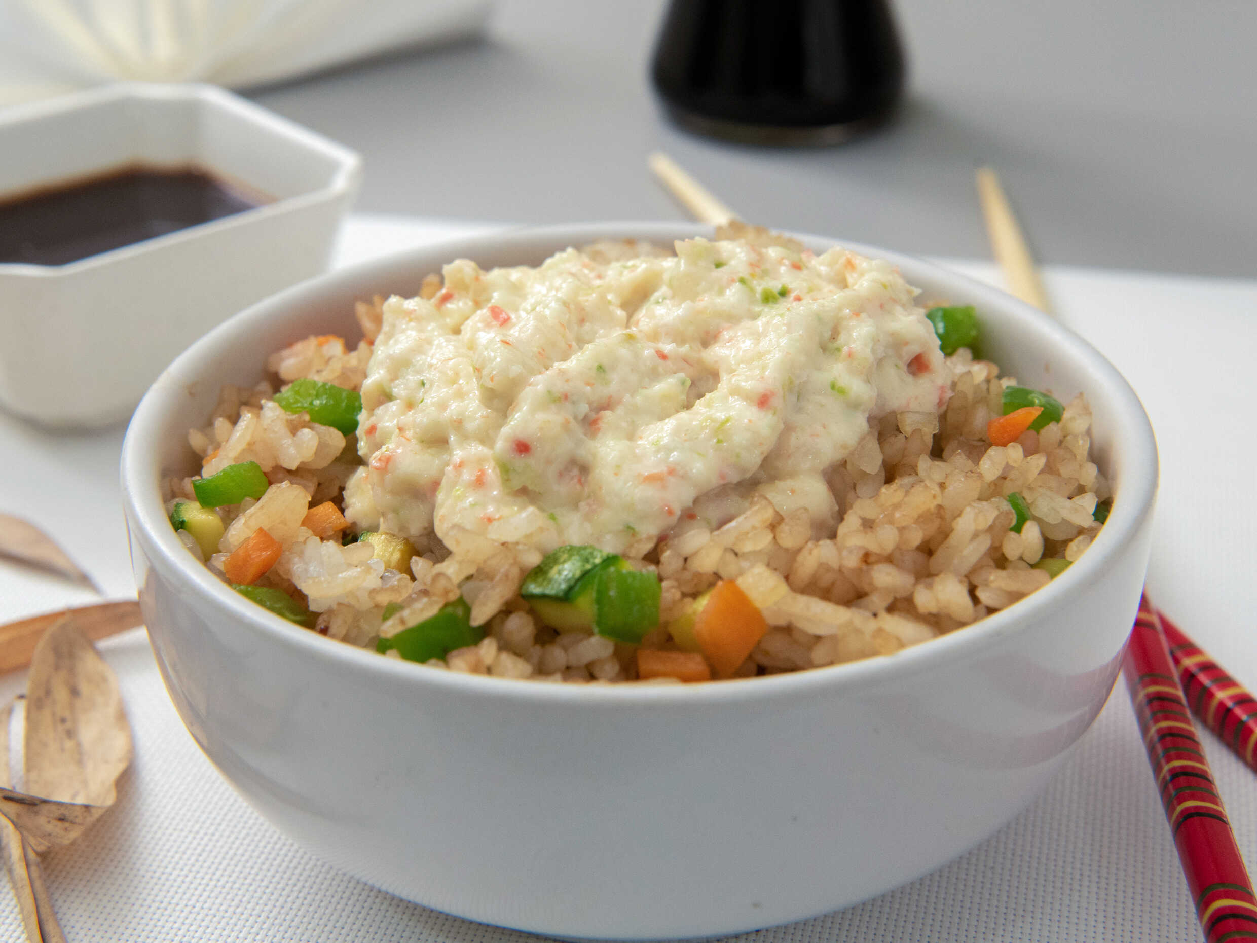 Arroz frito con verdura y salsa tampico (Porcion personal)