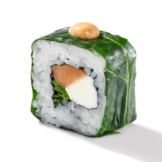 10 pzs | Salmón ahumado, pepino y queso crema por dentro; nori por fuera.